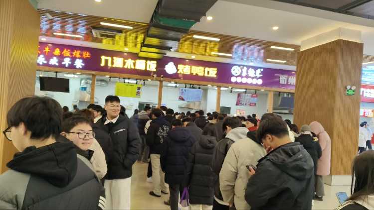 江苏苏州学校食堂,11000多人,食堂只有一栋,共一二楼。